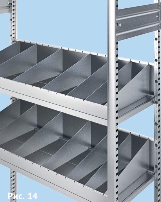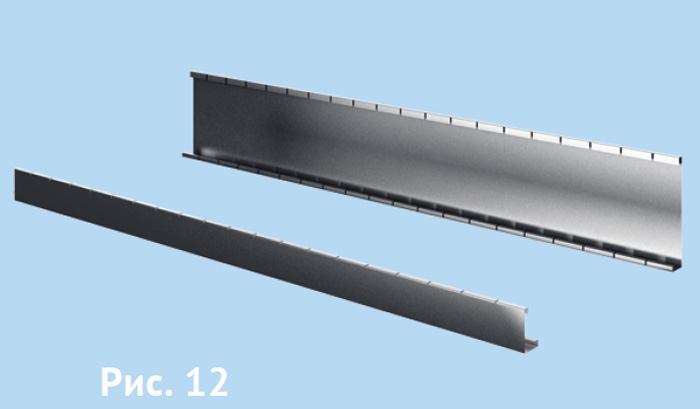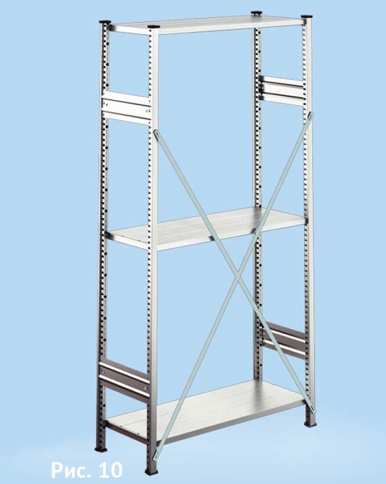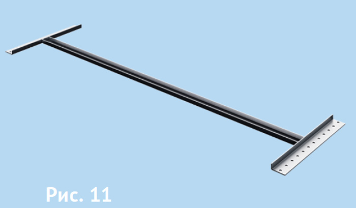 Для стелажних секцій шириною 1300 мм; висота встановлення 1100 мм. Для стелажних секцій шириною 1000 мм; висота встановлення 1400 мм. Для підвищення жорсткості діагональні розтяжки встановлюють у кожну третю секцію ряду. Пара розтяжок кріплять за допомогою гвинтів самонарізних 6,3х25. Розтяжку приховану фронтальну використовують для конструкцій з необхідністю доступу до стелажу з двох сторін, встановлюють по чотири на стелаж, в кожну третю секцію ряду. |